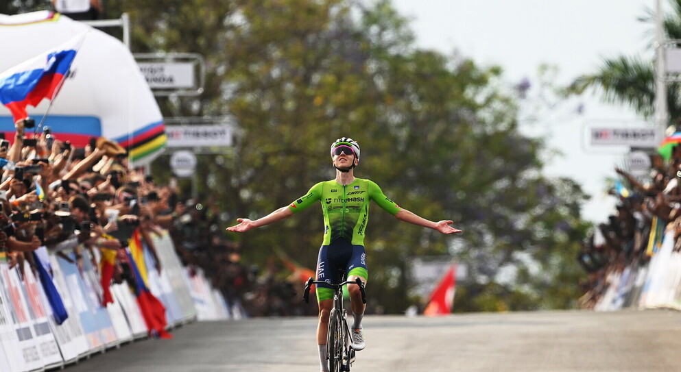 Il corridore italiano ha vinto la prova in linea dei Mondiali di Kigali. Un anno fa si era imposto tra gli Junior, quest’anno tra gli Under 23.