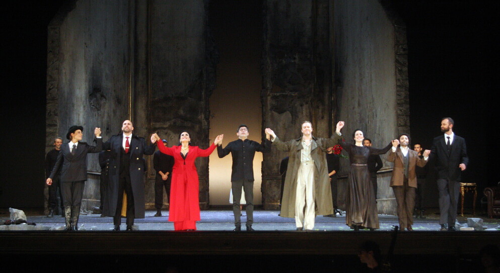 In un’opera del genere, dove la trama è intricata e a un certo punto, come avviene in queste baroccherie, tutti si travestono da qualcun altro, è fondamentale, in primo luogo, raccontare. La regista Cecilia Ligorio ha intanto il pregio di rendere intelleggibile l’azione. Poi la sviluppa con una recitazione accuratissima e fantasiosa, fra le scene di Gregorio Zurla, una reggia delabré, e i costumi contemporanei di Vera Pierantoni Giua, uniformi e cappottoni per tutti, salvo i clamorosi tailleur da vamp di Stratonica. Bellissimo spettacolo. E bellissima la direzione di Giulio Prandi, che si appoggia a un eccellente basso continuo di specialisti e per il resto barocchizza l’Orchestra del Massimo. Poi dinamiche ampie, agogiche energizzanti e in generale un’idea molto teatrale e incisiva della partitura, da quel thriller barocco che è. Quanto ai tagli, sono inevitabili, perché io posso anche ascoltare i cinque atti nella loro integralità, ma allora dovrei farlo come i veneziani del 1707, cioè andando e venendo dalla sala durante lo spettacolo, mangiando, bevendo, ciacolando, giocando e così via. Del resto, Mitridate Eupatore al Massimo l’avevano già fatto nel 1960, per l’altro tricentenario, quello della nascita: durava un’ora e mezzo in tutto, le arie da 42 diventavano 18, le parti dei castrati erano trascritte per baritoni e tenori. Qualche progresso, insomma, l’abbiamo fatto.