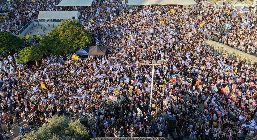 La folla in Piazza degli Ostaggi a Tel Aviv