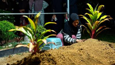 Ibunya Nur Ayuni Mohd Kamarulzaman turut hadir mengiringi pengebumian anak mereka.