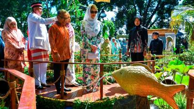 KOTA BHARU: Sultanah Kelantan Nur Diana Petra Abdullah berkenan berangkat merasmikan Pesta Flora Negeri Kelantan 2025 di Taman Perbandaran Tengku Anis, Tanjung Chat, di sini hari ini.