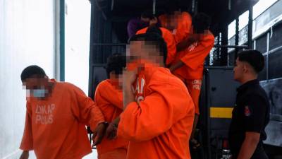 All suspects arrived at the Kota Bharu Magistrate’s Court at 8.30 am wearing orange police lockup attire and covering their faces.