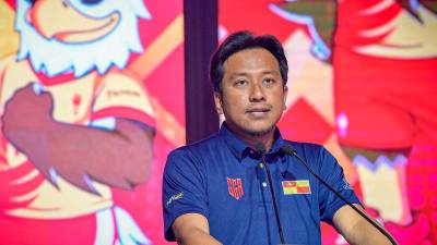 Exco Belia, Sukan dan Keusahawanan Selangor Mohd Najwan Halimi menyampaikan piala kemenangan pada Majlis Penutup SUKSES di Majlis Bandaraya Diraja Klang (MBDK), di sini hari ini.
