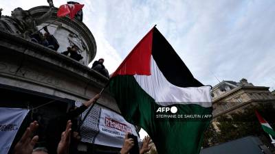 A few dozen people gathered outside the Israeli embassy in Athens to mark the October 7, 2023 attack by Palestinian militant group Hamas that triggered the conflict.
